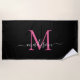 Chic Black Pink Monogram Feminine Girly Script Beach Towel
