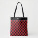 Chic black red checkered pattern & calligraphy tote bag