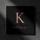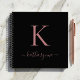 Chic Elegant Pink Rose Gold or Blush Pink Monogram Script on a chic Black Square Spiral Notebook. Easy to customize with your own name and details. Perfect for your luxury lifestyle! Makes a great journal or sketchbook! Please contact us at cedarandstring@gmail.com if you need assistance with the design or matching products.