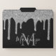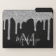 Chic Black and Silver Sparkle Glitter Drips Monogram File Folders with fashion faux blush silver glitter drips on a chic black background with your custom monogram and name. Please contact us at cedarandstring@gmail.com if you need assistance with the design or matching products.