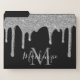 Chic Black Silver Sparkle Glitter Drips Monogram File Folder