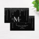 Chic Black Sparkle Glitter Drips Monogram Business Card with fashion faux black glitter drips on a chic background with your custom monogram and name. Space on the back for your custom message, or leave it blank to handwrite! Perfect for your luxury aesthetic! Please contact us at cedarandstring@gmail.com if you need assistance with the design or matching products.