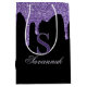Chic Black Sparkle Purple Glitter Drips Monogram Medium Gift Bag