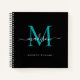 Chic Black Teal Green Monogram Initial Script Name Notebook