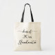 Chic, modern, customizable tote bag features black script words on a natural background with a black handle. Customize the year for a beautiful cursive typography design which reads: class of [YEAR] Graduate. Makes a great graduation gift.