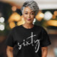Cute black t-shirt for your 60th birthday party featuring "sixty" showcased in a chic white script.