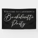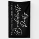 This elegant black bachelorette party banner features chic white typography for a modern bride who is going to have an upscale event with her bridesmaids. Trendy personalized minimalist bachelorette party decor.