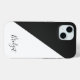 This iPhone 15 case is for black & white simple chic and modern design lovers. The design has a black and white geometric triangle. A simple and cool design for your personal statement. It is customizable with your name or monogram.