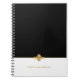 Keep track of all important notes in this modern and chic notebook. Personalize with your name or company name. It features black and white with decorative gold dots divider.