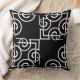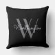 Enjoy two distinctive looks in gray, black and white on this elegant throw pillow. Reverse sides feature different designs. One has a 3D ironwork-look filigree of white over black, and the reverse is solid black with your name and large monogram initial in lighter and darker shades of gray.