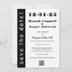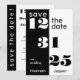 Bold and sophisticated, this save-the-date card features a striking split-panel design in classic black and white. The date is dramatically emphasized with large, stylized retro-chic numbers, ensuring your guests immediately recognize this incredibly important event.