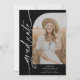 This photo graduation announcement features a semi arched photo frame and modern script "graduate" in white on a black background. The back is blank but can easily be customized with another photo and/or invitation text for graduation party. **ALL colors of this design are customizable by using the editing tool**