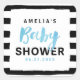 Chic Black & White Stripes Blue Baby Shower Square Sticker