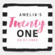 Chic Black & White Stripes Pink 21st Birthday Square Sticker