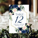 Chic Blooms | Navy Blue and Blush Pink Floral Table Number