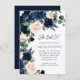 Chic Blooms | Navy Blue and Blush Pink Graduation Invitation
