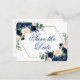 Chic Blooms | Navy Blue and Blush Save the Date Postcard