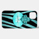 Chic Blue and Black Zebra Stripes Name Monogram Case-Mate iPhone Case