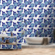 Stylish peel and stick Hamptons style blue and white floral hydrangeas patterned wallpaper