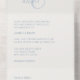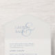 Lovely chic and simple wedding invitation, featuring a all in one design with includes a tear-off RSVP section. Lovely couple monogram displayed on the inside top flap in a combination of contemporary fonts in dusty blue and white. Text throughout comes in a dusty blue, against an elegant ivory background. Fully customizable.