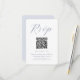This modern wedding response card features a place for your QR code so that guests can easily rsvp on your wedding website. The front features a simple and clean muted blue calligraphy design with your custom qr code. The minimal back is solid pastel powder blue.