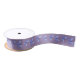 The Chic Blue Butterflies in Doodle Style Violet Satin Ribbon is part of the "Flutter in Blue: Bath, Beach, Yoga, Travel" collection. Periwinkle, a soft purple blue, is the color of the butterflies on a violet background.