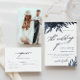 Elegant dark blue back of card with lovely calligraphy and text on the front Wedding Rsvp Response Card.
