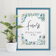 Chic Blue Floral Handwritten Script Wedding Favors Poster