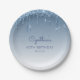 Chic Blue Glitter Drip 60th Birthday Party Paper Plates