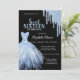 Chic Blue Glitter Drips Blue Dress Black Invitation