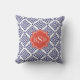 Chic blue greek key geometric patterns monogram throw pillow