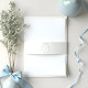 Chic Blue Hand Drawn Bow & Ribbon Monogram Crest Invitation Belly Band