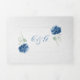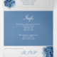 Lovely wedding tri-fold invitation done in graphic white textured paper, with pretty graphics of blue hydrangea flowers. A blue background, on the middle invitation section, adds a nice contrast. Personalize the text to suit your wedding needs. Matching products are available.
