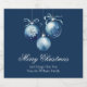 This chic non photo Merry Christmas party beer bottle label features elegant blue cursive script next to a pretty watercolor drawing of holiday ornaments with a bow. Customize these beautiful holiday gifts for friends and family with white script.