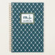 Dark blue and white delicate geometric pattern personalized monogram planner.