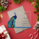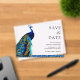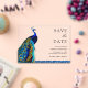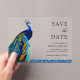 Amaze your guests with this elegant peacock theme wedding save the date featuring a beautiful peacock with vivid feathers and traditional typography.