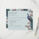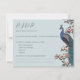 This Chic Blue Peacock Reply Card features hand-drawn blue and teal peacock peafowl bird and magnolia flowers and an elegant floral and bird pattern on the back, all against an elegant soft blue background. All text is editable.