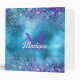 Chic Blue pink iridescent glitter monogram 3 Ring Binder