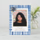 Chic Blue Plaid and Flowers Graduation Photo Announcement
