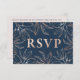 Immerse yourself in this chic wedding RSVP card, featuring delicate rose gold foliage on a sophisticated dark blue background. This elegant design is perfect for the modern couple seeking a stylish and refined touch for their special day. The reverse side includes RSVP details and a convenient QR code, allowing guests to respond with ease. Ideal for contemporary weddings, this card can be personalized to reflect your unique love story, adding a timeless charm that speaks to your style.