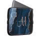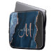 Chic Blue Rose Gold Glitter Agate Custom Monogram Laptop Sleeve