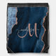 Add a touch of glitter and glam to your school outfit with this elegant personalized drawstring bag featuring a navy blue agate background accented with rose gold glitter. Personalize your hand lettered monogram and name in modern script typography. A unique girly gift for back to school, birthday, holidays and any special occasion. Designed just for you by Extreme Tees!