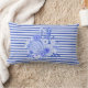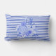 Pretty blue Delft inspired accent throw pillow done in a two tone blue horizontal stripe pattern with a cluster of blue flowers on the front. Customize to add text to this lovely decorator touch. Matching products are available.