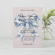 Chic Blue White Bow Blush Pink Wedding Invitation
