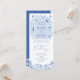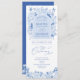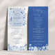 Elegant blue and white wedding program featuring classy Chinoiserie botanical floral pattern