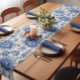 Chic Blue white floral chinoiserie toile monogram Short Table Runner