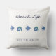 Chic Blue White Shells and Fish Family Beach House Throw Pillow