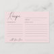 Chic Blush Pink Bridal shower Recipe Enclosure Card