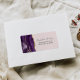 The left-hand edge of this elegant modern wedding RSVP address label features a purple watercolor agate border trimmed with faux gold glitter. The customizable text combines charcoal gray handwriting and copperplate fonts on a pale blush pink background.
