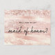 Chic girly maid of honor proposal postcard featuring unique trendy pink/rose gold background and typography ''maid of honor'' in modern lettering.